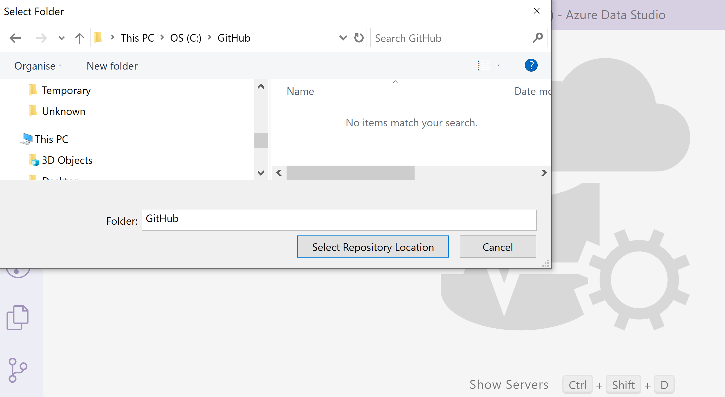 Paste in the URL that you just copied and click enter. A dialog will open asking you to select a folder. This is the parent directory where your local repository will be created. The clone will create a directory for your repository so you do not need to. I suggest that you use a folder called GitHub or something similar to place all of the repositories that you are going to clone and create.