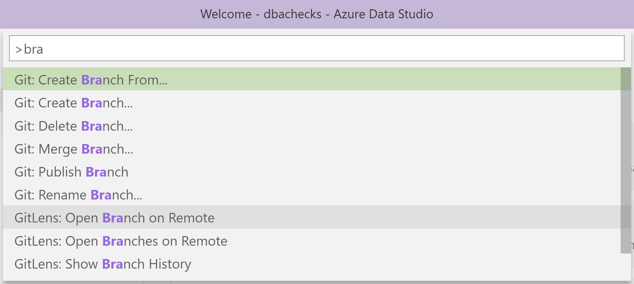 Or open the Command Palette and type Branch until you see Git: Create Branch