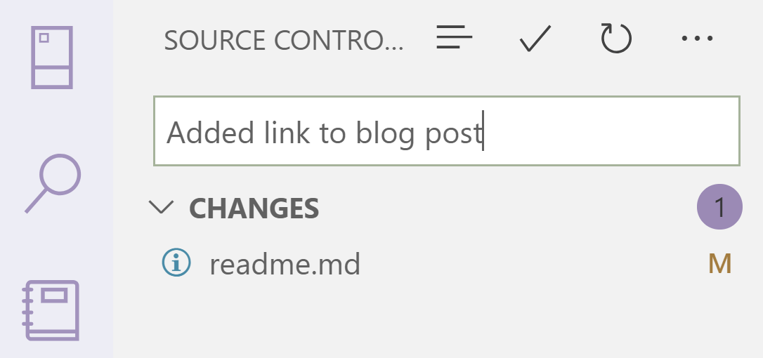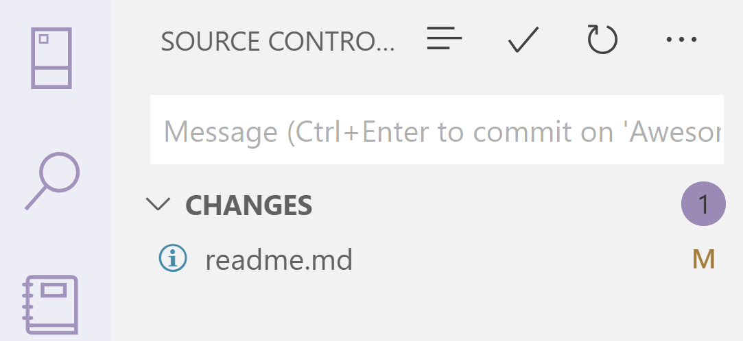 Write your code or change the documentation, save the file and in Visual Studio Code or Azure Data Studio you will see that the source control icon has a number on it