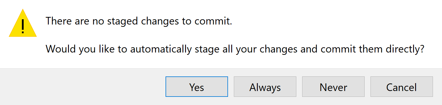 You will get a pop-up asking you if you wish to stage your changes. I click Yes and never Always so that I can use this prompt as a sanity check that I am doing the right thing
